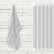 Lot de 2 essuie-mains, torchons de cuisine jacquard en pur coton, style rayure. Grâce à ses qualités d'absortion maximale, ces torchons sont parfaits pour essuyer vos mains ou votre vaisselle, nettoyer les comptoirs de votre cuisine... Doté d'un oeillet en acier inoxydable de suspension pratique. Composition: 100 % coton jacquard. Dimension: 50x70 cm. Entretien: lavage 40 °C