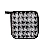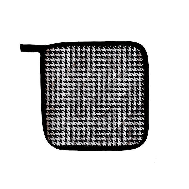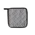 Manique de cuisine en pur coton, style moderne. Il vous protègera parfaitement lors de vos expériences culinaires! Couleur: blanc, noir et or. Composition: 100 % coton. Dimension: 20x20 cm. Entretien: lavage 40°C