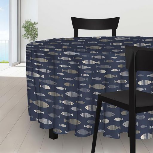 Cette nappe à l'imprimé de poissons stylisés, alliant modernité et sobriété, s'adaptera parfaitement à votre intérieur. Traitement waterproof Entretien facile, repassage inutile Composition: 100% polyester