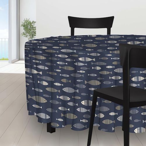 Cette nappe à l'imprimé de poissons stylisés, alliant modernité et sobriété, s'adaptera parfaitement àvotre intérieur. Traitement waterproof Entretien facile, repassage inutile Composition: 100% polyester