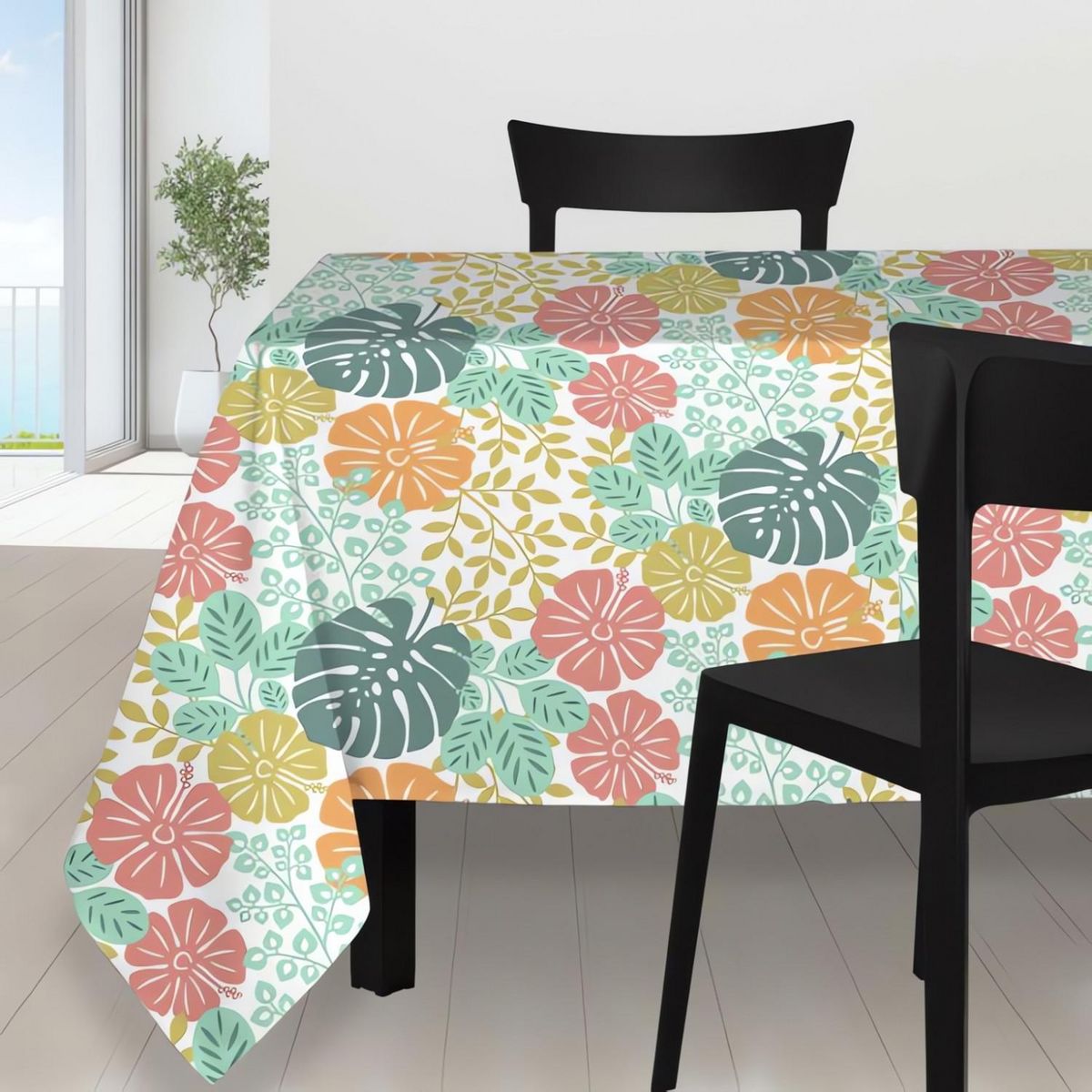 Cette nappe au design fleural et aux couleurs très actuels habillera votre table avec style. Traitement waterproof Entretien facile, repassage inutile Composition: 100% polyester