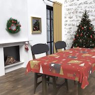 Cette nappe Sapin sera idéale pour vos fêtes de fin d'année. Traitement déperlant waterproof. Couleur: rouge. Composition: 100 % polyester. Entretien: - entretien facile, repassage inutile - lavage 30 °C
