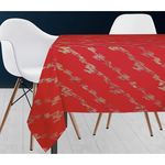 Nappe COMETE, idéale pour donner une touche de fête à votre table. Ses impressions dorées sont élégantes et lui apportent de l'originalité et un côté festif. Pour vos repas de fin d'année ou d'autres occasions, n'hésitez plus, la collection COMETE est votre atout Déco. Repassage: sur l'envers Lavage