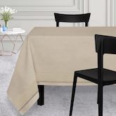 Cette nappe sera parfaite pour dresser une table à la fois sobre et élégante. Finition d'exception jour venise et à plis piqués plats. Nappe revêtement anti-tâches, tissu déperlant. Composition: Polycoton