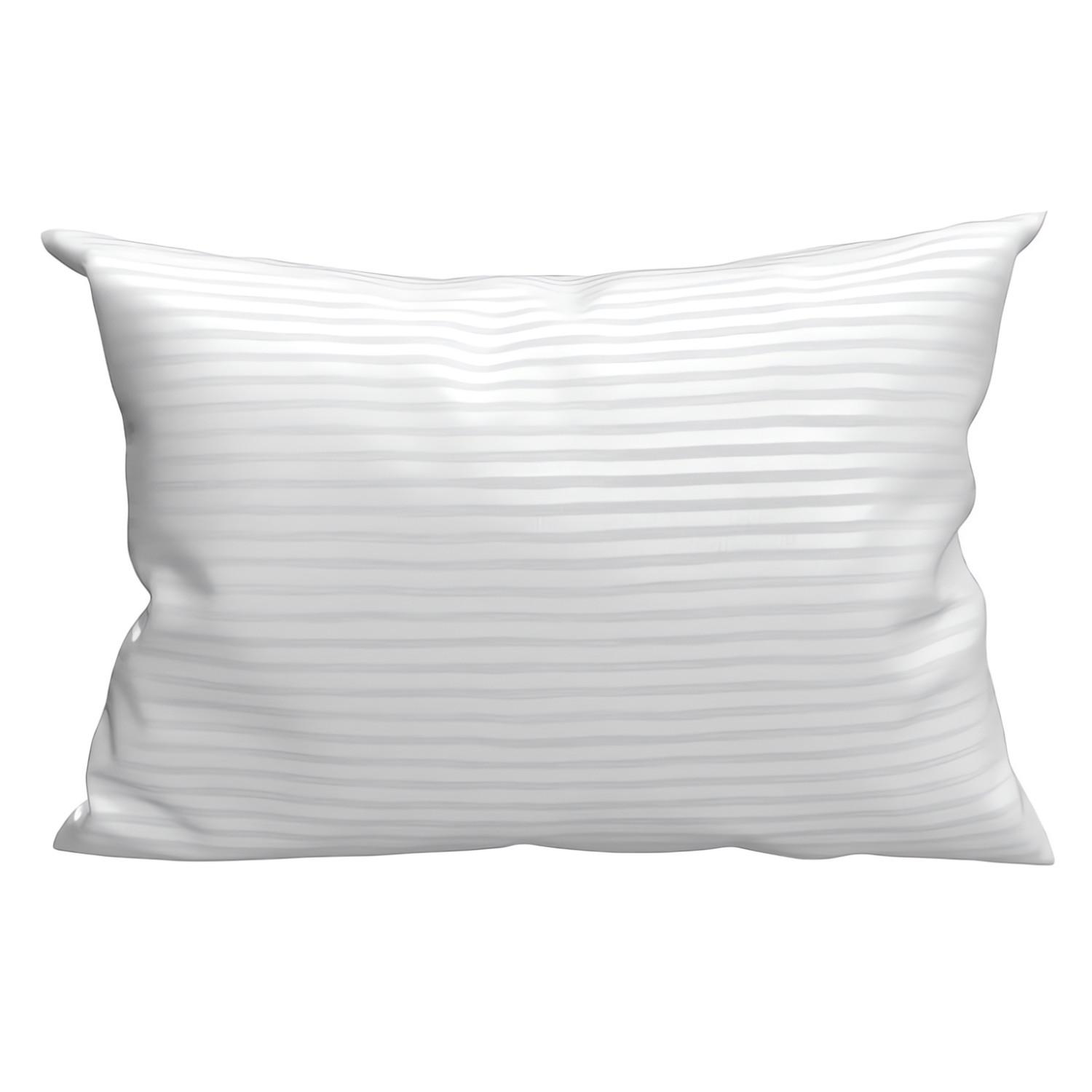 Oreiller anti-acarien au toucher plume, enveloppe satin. Couleur: - Blanc. Composition: - Enveloppe : 100% satin polyester microfibre. - Garnissage: 100 % polyester fibre toucher plume. De part sa nature 100% polyester vierge, ce produit est anti-acarien. Entretien: Lavable en machine. OEKO-TEX Fabr