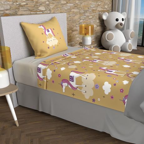 Parure de draps 180x290 cm LICORNES, 100% coton 57 fils/cm2, par Soleil d'Ocre