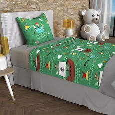 Parure de lit imprimée en pure coton pour lit 1 personne. Qualité supérieure, tissage serré. Composition: - 100 % coton 57 fils/cm2. Parure de lit: - 1 drap plat 180x290 cm. - 1 Drap housse 90x190 cm (bonnet 25 cm). - 1 taie d'oreiller dessin placé 63x63 cm. Entretien: - Entretien facile - Lavage 40° en machine