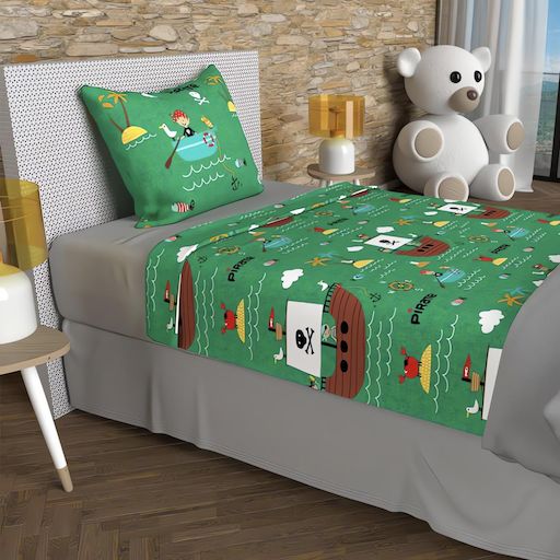 Parure de draps 180x290 cm PIRATES, 100% coton 57 fils/cm2, par Soleil d'Ocre