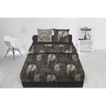 Parure de lit imprimée en pure coton pour grand lit 2 personnes. Qualité supérieure, tissage serré. Composition: - 100 % coton 57 fils/cm2. Parure de lit: - 1 drap plat 260x300 cm. - 1 Drap housse 160x200 cm (bonnet 25 cm). - 2 taies d'oreiller dessin placé 63x63 cm. Entretien: - Entretien facile - Lavage 40° en machine
