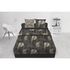 Parure de lit imprimée en pure coton pour grand lit 2 personnes. Qualité supérieure, tissage serré. Composition: - 100 % coton 57 fils/cm2. Parure de lit: - 1 drap plat 260x300 cm. - 1 Drap housse 160x200 cm (bonnet 25 cm). - 2 taies d'oreiller dessin placé 63x63 cm. Entretien: - Entretien facile -