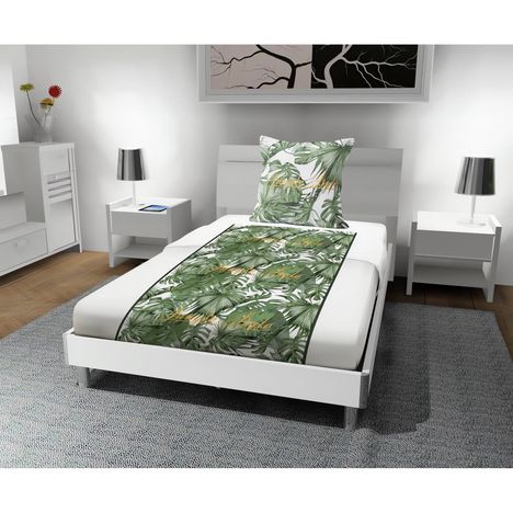 Parure de lit imprimée en pure coton pour lit 2 personnes. Qualité supérieure, tissage serré. Composition: - 100 % coton 57 fils/cm2. Parure de lit: - 1 drap plat - 1 Drap housse (bonnet 25 cm). - 2 taies d'oreiller dessin placé 63x63 cm. Entretien: - Entretien facile - Lavage 40° en machine