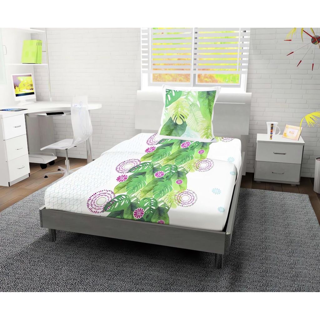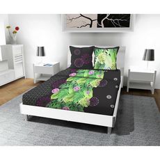 Parure de lit imprimée en pure coton pour lit 1 personne. Qualité supérieure, tissage serré. Couleur: - Blanc. Composition: - 100 % coton 57 fils/cm2. Parure de lit: - 1 drap plat 180x290 cm. - 1 Drap housse 90x190 cm (bonnet 25 cm). - 1 taie d'oreiller dessin placé 63x63 cm. Entretien: - Entretien facile - Lavage 40° en machine