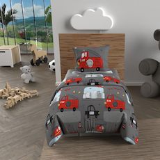 Parure housse de couette 120x150 cm POMPIERS gris, 100% coton 57 fils/cm2, par Soleil d'Ocre