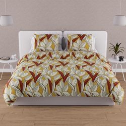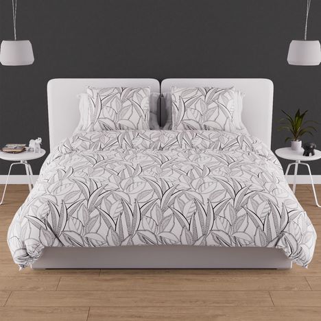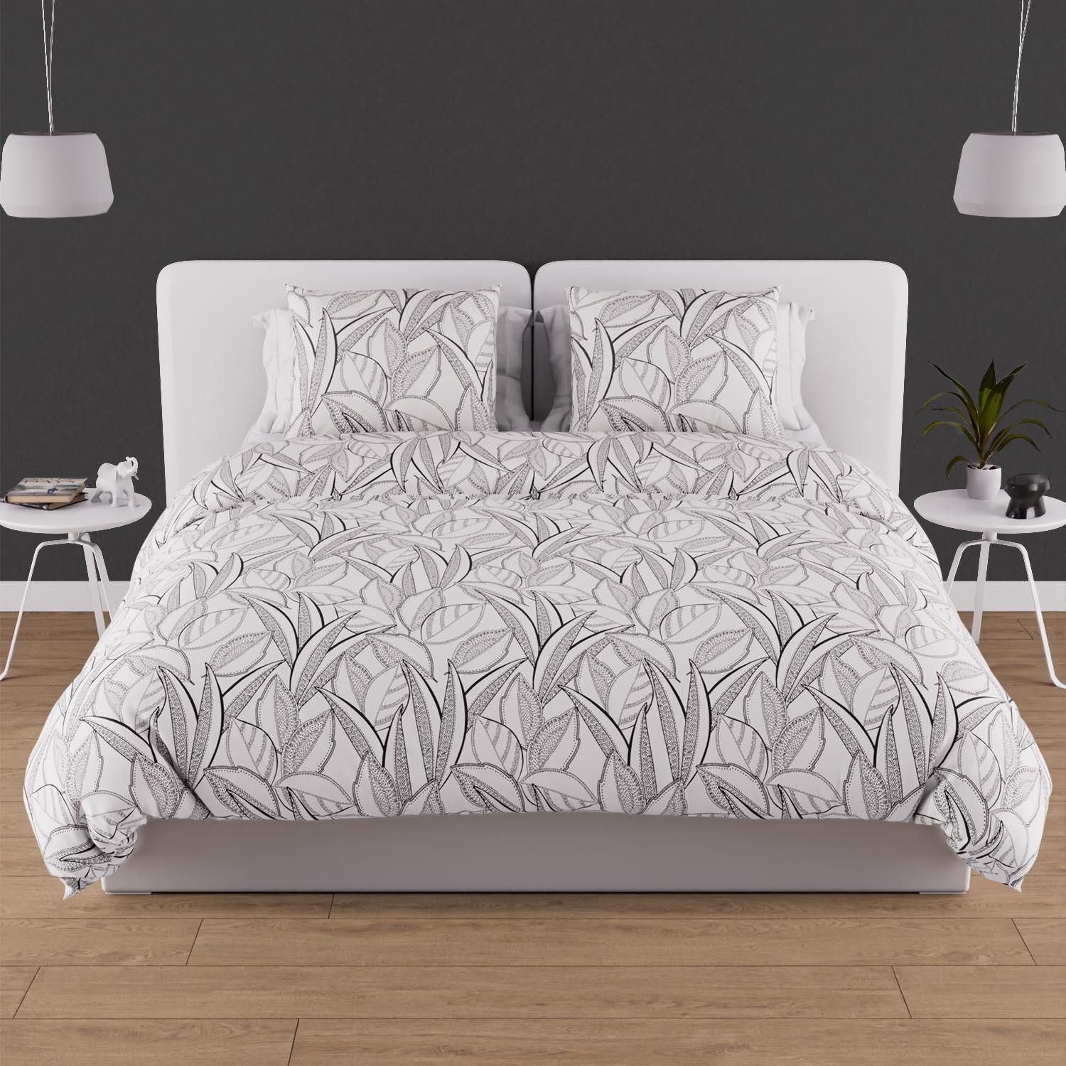 Linge de lit imprimé en pur coton pour lit 2 personnes. Qualité supérieure, tissage serré. Composition: - 100 % coton 57 fils/cm2. Parure de lit: 1 housse de couette avec rabat de 40 cm et 2 taies d'oreiller dessin placé 63x63 cm. Entretien: - Entretien facile - Lavage 40° en machine