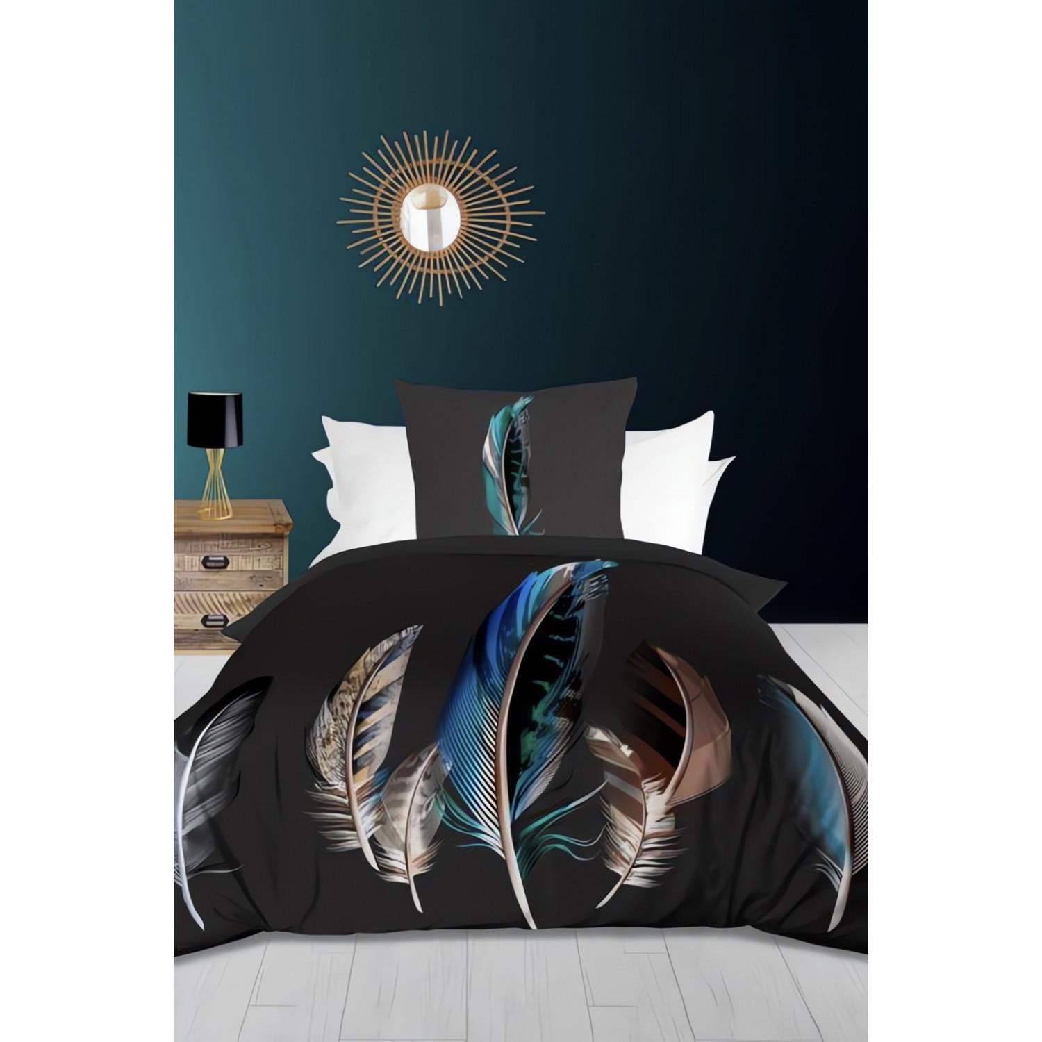 En savoir +Linge de lit imprimé en pur coton pour lit 1 personne. Qualité supérieure, tissage serré. Dessin placé. Couleur: Style plume: anthracite. Composition: - 100 % coton 57 fils/cm2. Parure de lit: - 1 housse de couette dessin placé: 140x200 cm avec rabat de 40 cm. - 1 taie d'oreiller dessin placé 75x75 cm. Entretien: - Entretien facile - Lavage 40° en machine