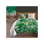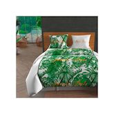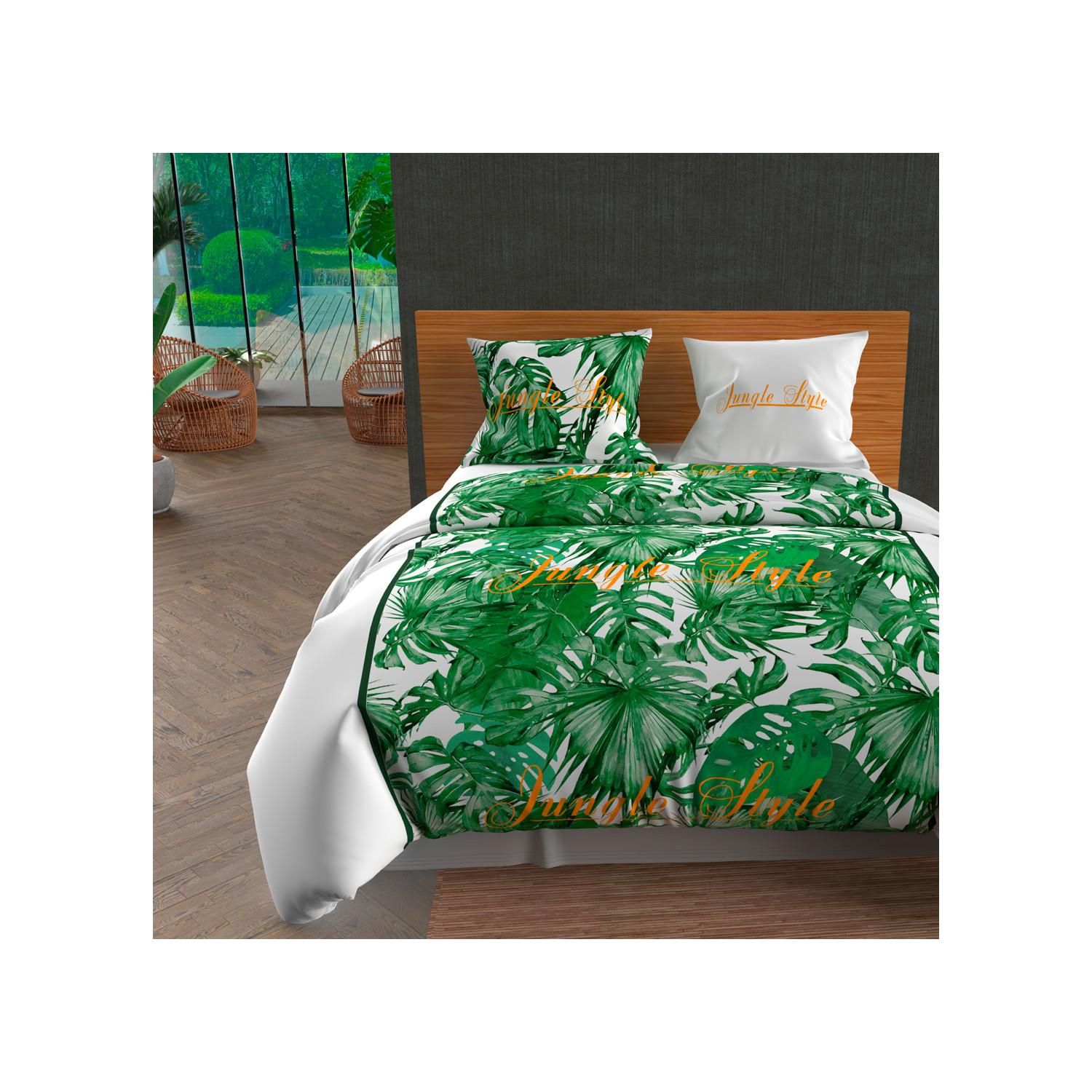 Linge de lit imprimé en pur coton pour grand lit 2 personnes. Qualité supérieure, tissage serré. Style jungle. Composition: - 100 % coton 57 fils/cm2. Parure de lit: 1 housse de couette avec rabat de 40 cm et 2 taies d'oreiller dessin placé 63x63 cm. Entretien: - Entretien facile - Lavage 40° en machine