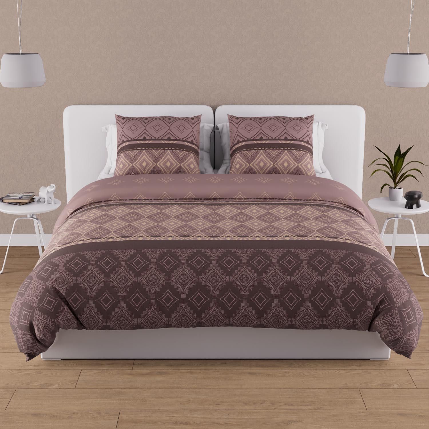 Linge de lit imprimé en pur coton pour lit 2 personnes. Qualité supérieure, tissage serré. Composition: - 100 % coton 57 fils/cm2. Parure de lit: 1 housse de couette avec rabat de 40 cm et 2 taies d'oreiller dessin placé 63x63 cm. Entretien: - Entretien facile - Lavage 40° en machine