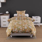 Linge de lit imprimé en pur coton pour lit 2 personnes. Qualité supérieure, tissage serré. Couleur: - Camel. Composition: - 100 % coton 57 fils/cm2. Parure de lit: 1 housse de couette avec rabat de 40 cm et 2 taies d'oreiller dessin placé 63x63 cm. Entretien: - Entretien facile - Lavage 40° en machine