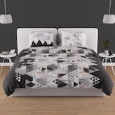 Linge de lit imprimé en pur coton pour grand lit 2 personnes. Qualité supérieure, tissage serré. Couleur: - Anthracite. Composition: - 100 % coton 57 fils/cm2. Parure de lit: - housse de couette: 220x240 cm avec rabat de 40 cm. - 2 taies d'oreiller dessin placé 63x63 cm. Entretien: - Entretien facil