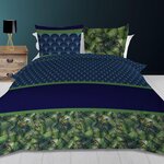 Linge de lit imprimé en pur coton pour lit 2 personnes. Qualité supérieure, tissage serré. Couleur: - Bleu et vert. Composition: - 100 % coton 57 fils/cm2. Parure de lit: 1 housse de couette avec rabat de 40 cm et 2 taies d'oreiller dessin placé 63x63 cm. Entretien: - Entretien facile - Lavage 40°