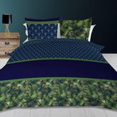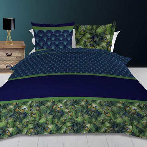 Parure housse de couette en coton 57 Fils PAON bleu, par Soleil d'ocre