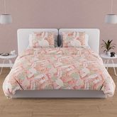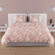 Linge de lit imprimé en pur coton pour lit 2 personnes. Qualité supérieure, tissage serré. Couleur: - Corail. Composition: - 100 % coton 57 fils/cm2. Parure de lit: 1 housse de couette avec rabat de 40 cm et 2 taies d'oreiller dessin placé 63x63 cm. Entretien: - Entretien facile - Lavage 40° en machine
