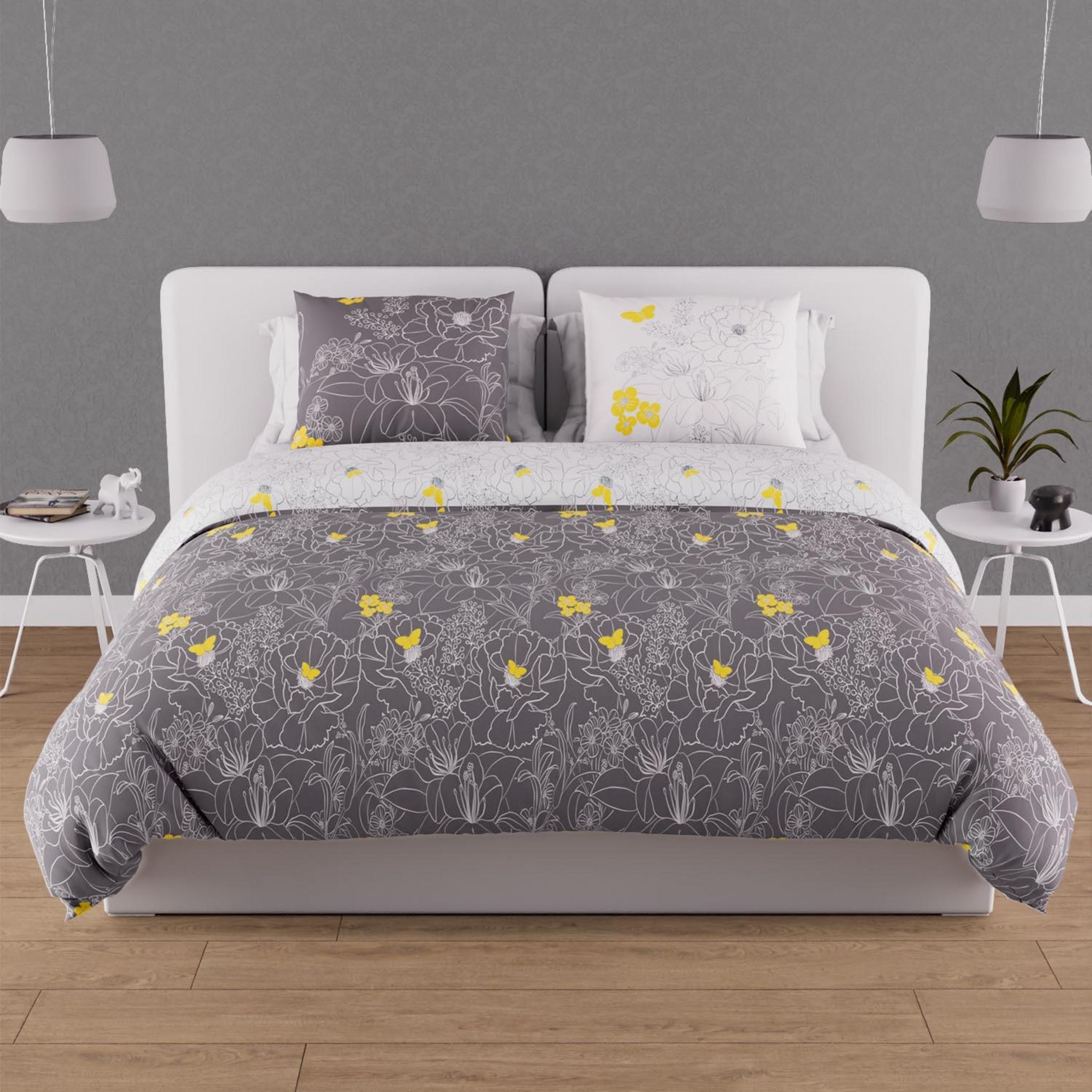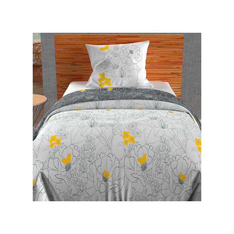 Linge de lit imprimé en pur coton pour lit 2 personnes. Qualité supérieure, tissage serré. Composition: - 100 % coton 57 fils/cm2. Parure de lit: - housse de couette: 240x220 cm avec rabat de 40 cm. - 2 taies d'oreiller dessin placé 63x63 cm. Entretien: - Entretien facile - Lavage 40° en machine