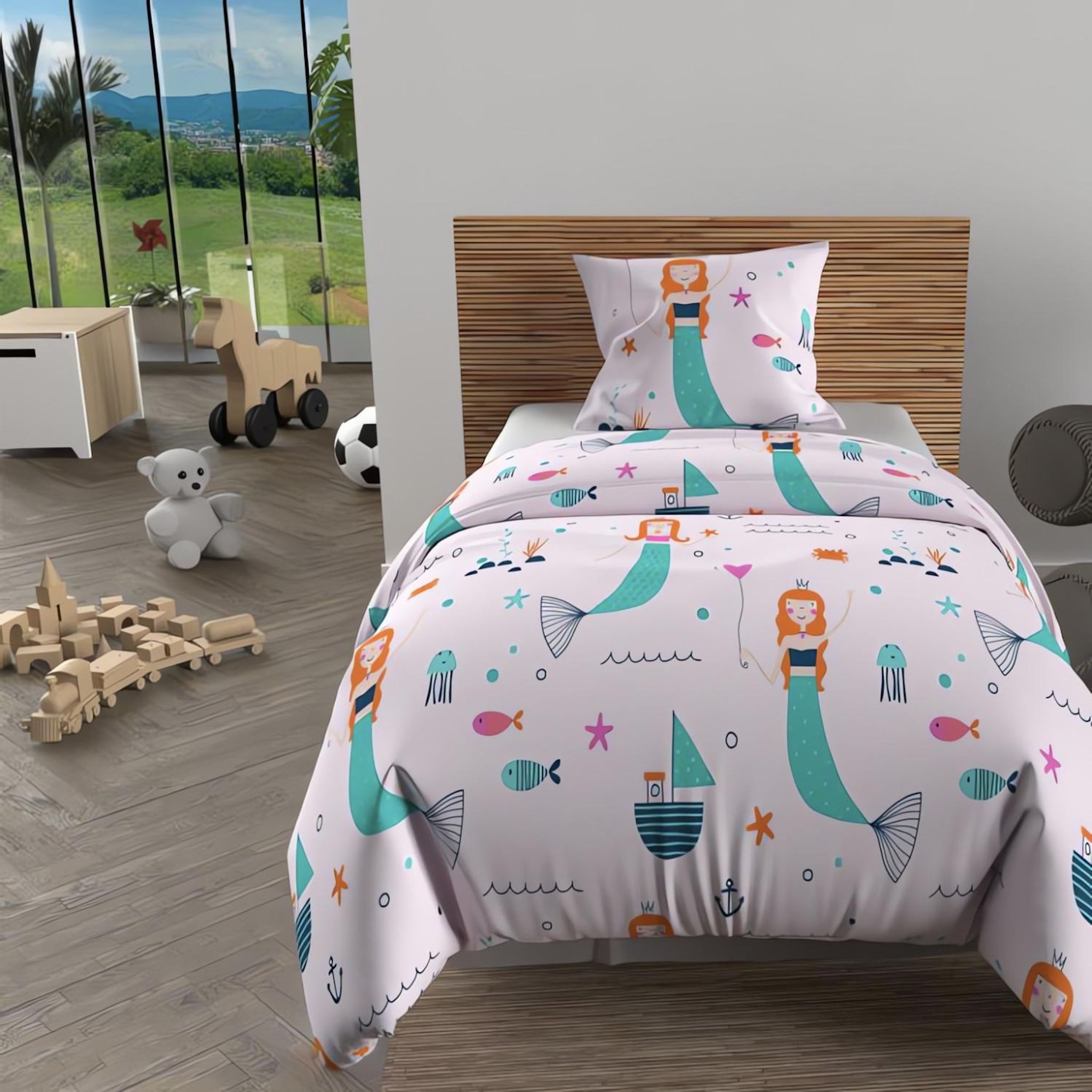 Parure housse de couette SIRENES, 100% coton 57 fils/cm2, par Soleil d'Ocre