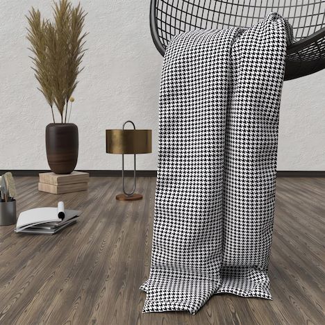 Toucher ultra doux pour ce plaid polaire microfibre imprimé. Couleur: Style pieds de poule: blanc et noir. Composition: 100% polyester microfibre Entretien: Entretien facile Lavage 40° en machine