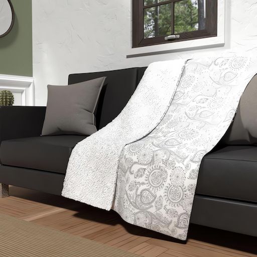 Toucher ultra doux pour ce plaid composé d'une face en polaire microfibre imprimée et d'une face imitation laine de mouton. Couleur: - Style cachemire: gris et blanc. Composition: - 100% polyester Entretien: - Entretien facile - Lavage 40° en machine