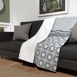 Toucher ultra doux pour ce plaid composé d'une face en polaire microfibre imprimée et d'une face imitation laine de mouton. Couleur: - Style carreaux de ciment: bleu, blanc et gris. Composition: - 100% polyester Entretien: - Entretien facile - Lavage 40° en machine