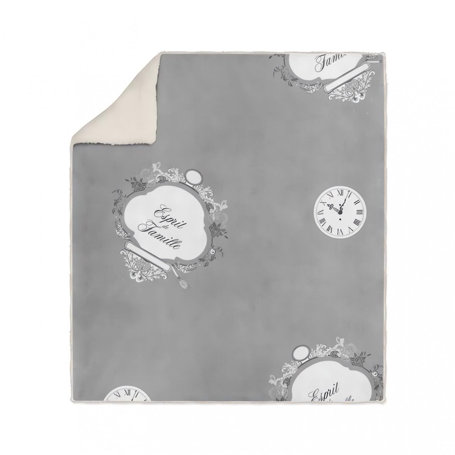 Plaid polaire sherpa microfibre imprimé 110x170 cm ESPRIT DE FAMILLE gris, par Soleil d'ocre