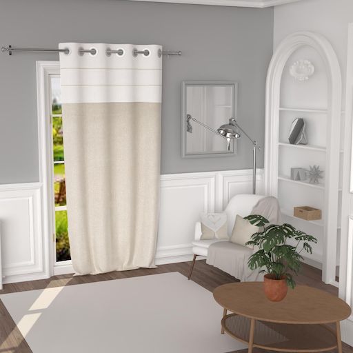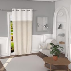 Ce rideau apportera à votre intérieur douceur et sobriété. Finition: 8 oeillets en métal inoxydables 2 cordes Couleur: Blanc et Ecru. Composition: 100% coton lavé Dimensions: 135X250 cm. Entretien: Lavage à froid en machine.