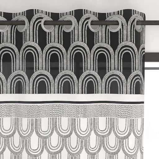 Une belle touche de modernité avec cette collection DUNE en polyester noir et blanc. Finition: 8 oeillets en métal inox (anti-rouilles). Prêt a poser. Couleur: Noir et blanc. Composition: 100% polyester. Dimensions: 135x250 cm. Entretien: - entretien facile, repassage inutile. - lavable en machine 3