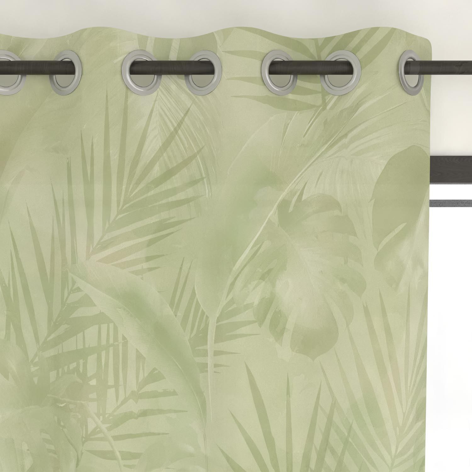 Une douce touche d'exotisme avec cet imprimé aquarellé Goya au dégradé de verts. Finition: 8 oeillets en métal inox (anti-rouilles). Prêt a poser. Couleur: Vert. Composition: 100% polyester. Dimensions: 135x250 cm. Entretien: - entretien facile, repassage inutile. - lavable en machine 30°c.