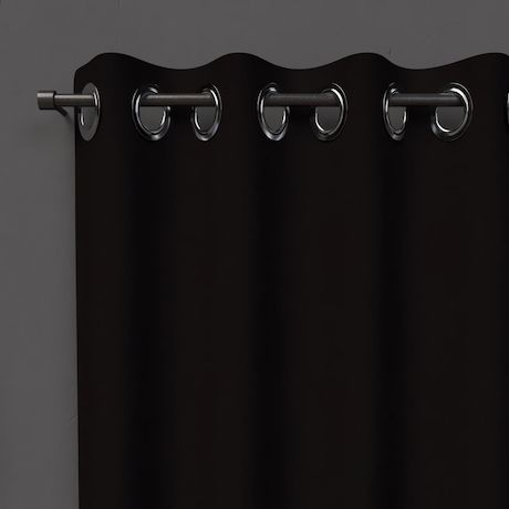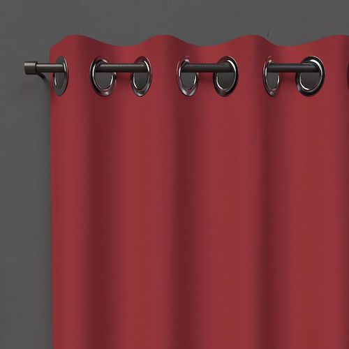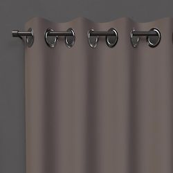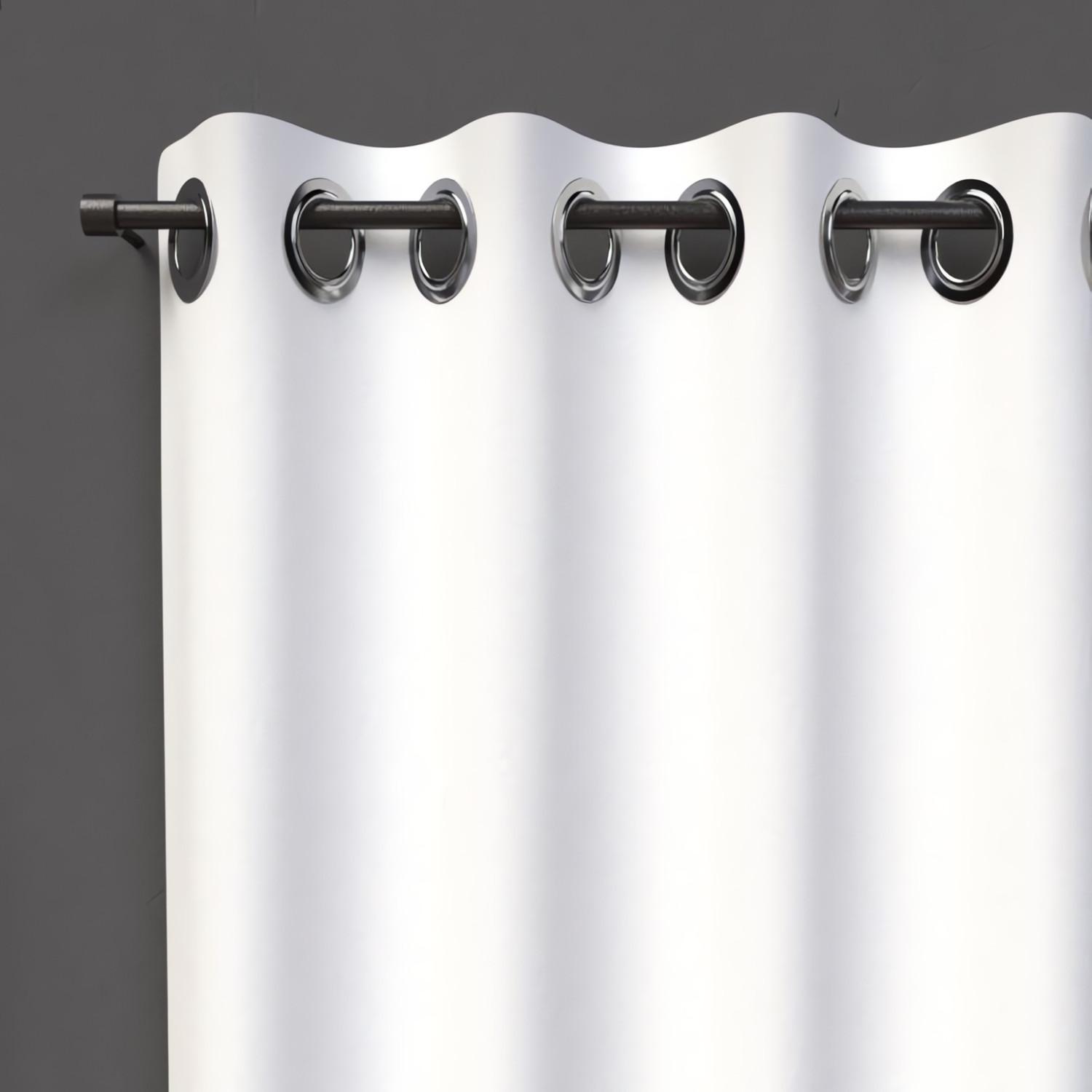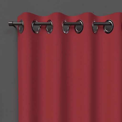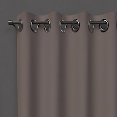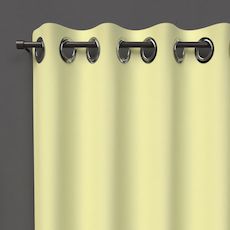 Rideau uni qui occulte la lumière. Idéal pour habiller votre fenêtre tout en vous protégeant de la lumière et du vis-à-vis. Finition: 8 oeillets métal inoxydables. Prêt à poser. Composition: 100% polyester. Dimensions: 135x180 cm. Entretien: - entretien facile, repassage inutile. - lavable en machine 30 °C.