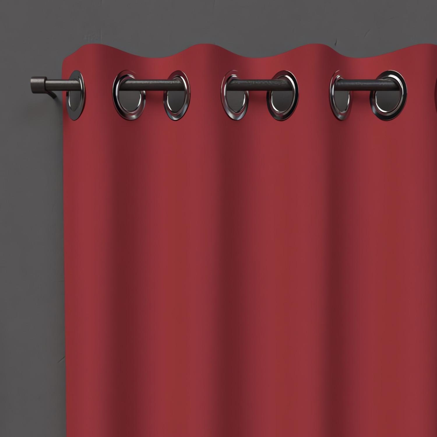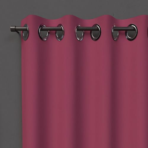 Rideau uni qui occulte la lumière. Idéal pour habiller votre fenêtre tout en vous protégeant de la lumière et du vis-à-vis. Finition: 8 oeillets métal inoxydables. Prêt à poser. Composition: 100% polyester. Dimensions: 135x180 cm. Entretien: - entretien facile, repassage inutile. - lavable en machin
