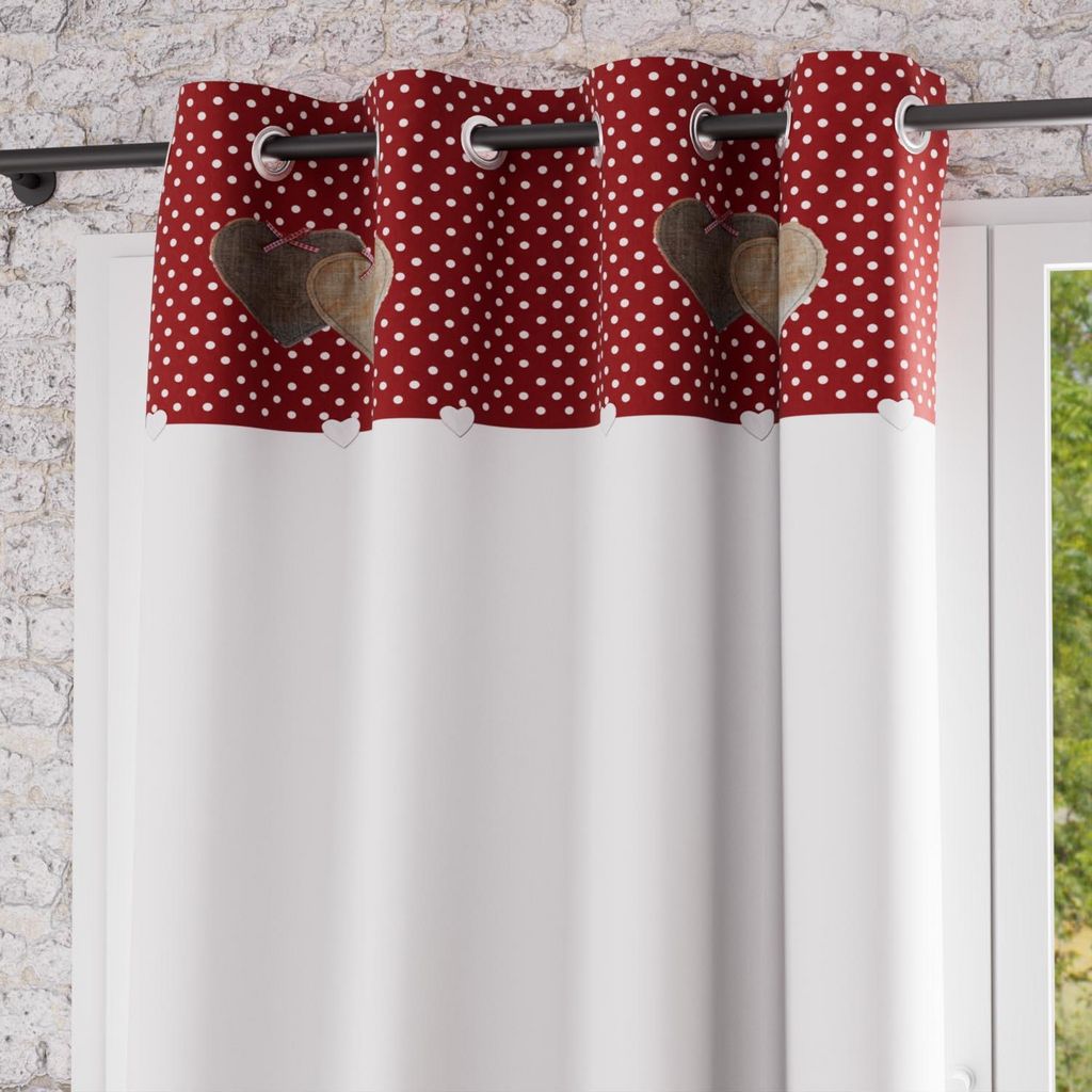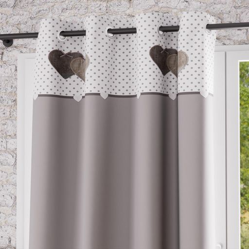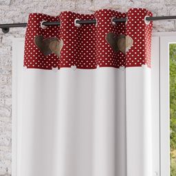 Ce rideau LOVE sera parfait pour donner àvotre intérieur une atmosphère romantique et chaleureuse. Finition: 8 oeillets métal inoxydables. Patchs en forme de coeur comme éléments décoratifs. Composition: 100% coton. Dimensions: 130x250 cm. Entretien: Lavage àfroid en machine.
