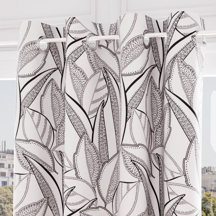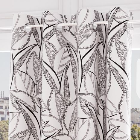 En savoir +Ce rideau TOGO, au motif ethnique et aux couleurs très tendances, modernisera assurément votre intérieur. Finition: 8 oeillets en métal anti-rouilles, rideau prêt à poser. Couleur: - Blanc et noir. Composition : - 100 % coton half panama. Dimensions : - 135x250 cm. Entretien: - Lavage à froid en machine.