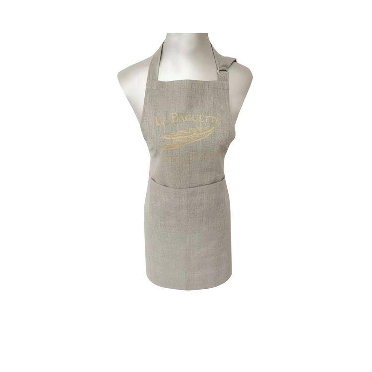 Pour une protection antitâche avec style optez pour le tablier imprimé BAGUETTE. Vous apprécierez son design imprimé doré qui lui donne un petit côté chic. Composition : 100% coton brodé Dimensions : 60 x 80 cm
