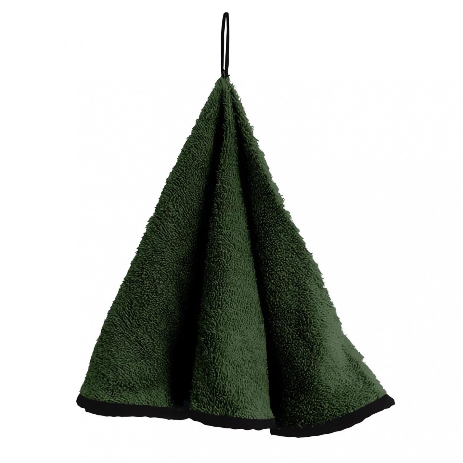 Essuie-mains, torchon de cuisine en pur coton éponge, style uni. Grâce à ses qualités d'absortion maximale, ces torchons sont parfaits pour essuyer vos mains ou votre vaisselle, nettoyer les comptoirs de votre cuisine... Doté d'un oeillet en acier inoxydable de suspension pratique. Couleur: vert. Composition: 100 % coton éponge. Dimension: diamètre 60 cm. Entretien: lavage 60°C