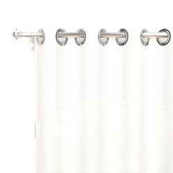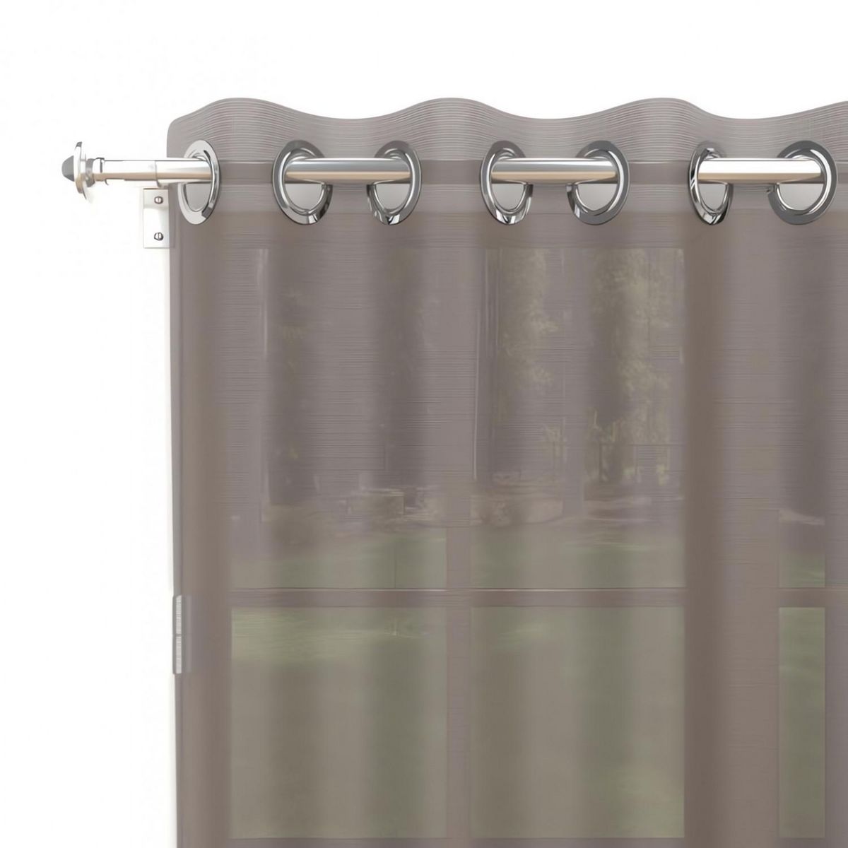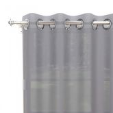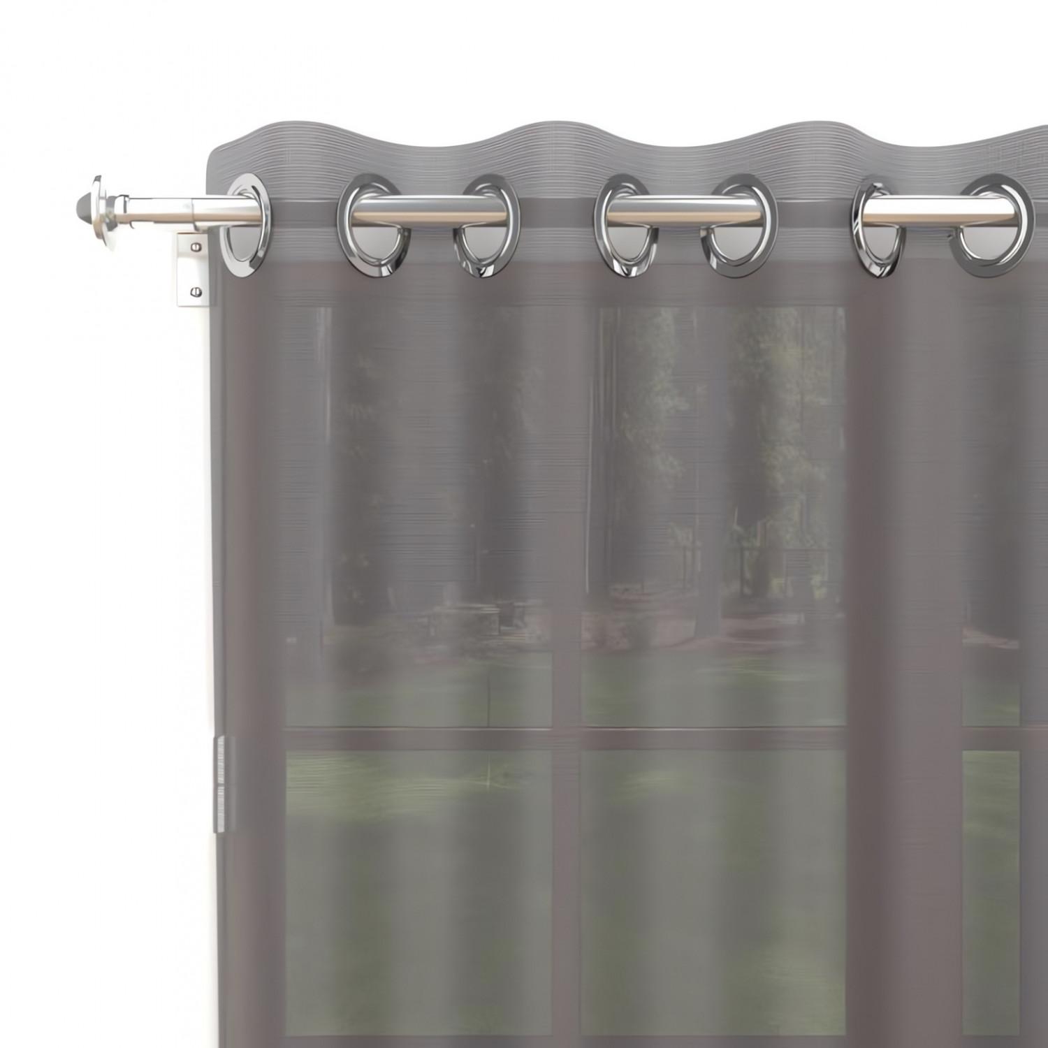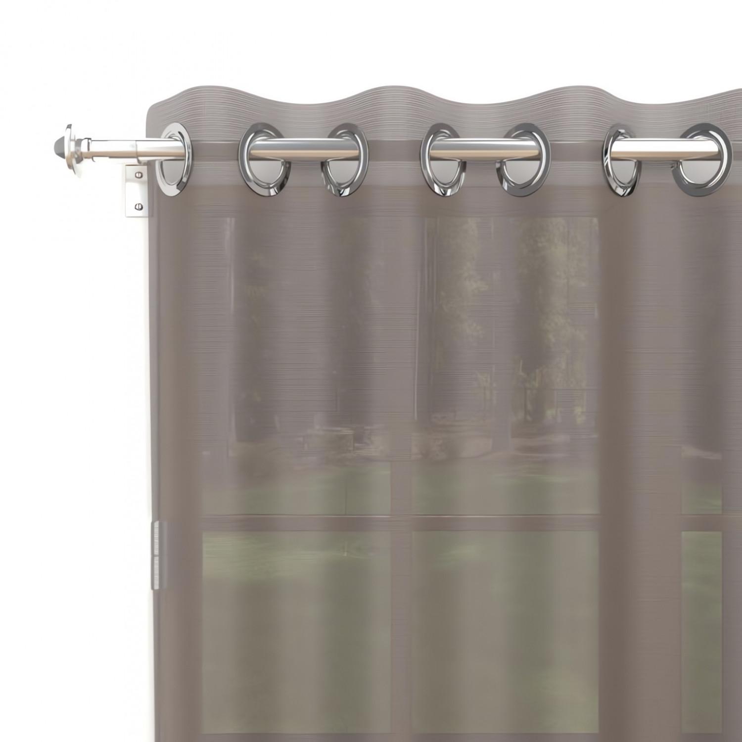 Voile à oeillets uni, simple, et altique. Finition: oeillets en métal inox (anti-rouilles). Prêt a poser. Composition: 100% polyester. Entretien: - entretien facile, repassage inutile. - lavable en machine 30°c.