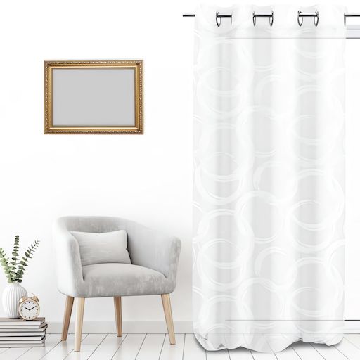 Ce voilage CIRCLE apportera de la modernité à votre intérieur. Finition: 8 Oeillets métal inoxydables. Couleur: Blanc. Composition: 100% polyester Jacquard. Dimensions: 135x250 cm Entretien: Lavage en machine à 30 degrès.