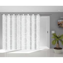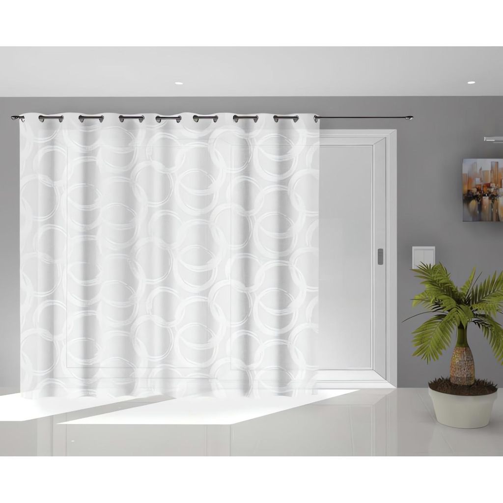 Ce voilage CIRCLE apportera de la modernité à votre intérieur. Finition: 16 oeillets métal inoxydables. Couleur: Blanc. Composition: 100% polyester Jacquard. Dimensions: 280x250 cm, taille spéciale pour grande baie vitrée Entretien: Lavage en machine à 30 degrès.