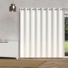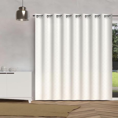 Ce voilage PAULINE habillera vos baies vitrées avec douceur et modernité. Finition: - 16 oeillets métal inoxydables. Couleur: - Blanc. Composition: - 100% polyester Jacquard. Dimensions: - 280x250 cm, taille spéciale grande baie vitrée. Entretien: - Lavage en machine à 30 degrès.