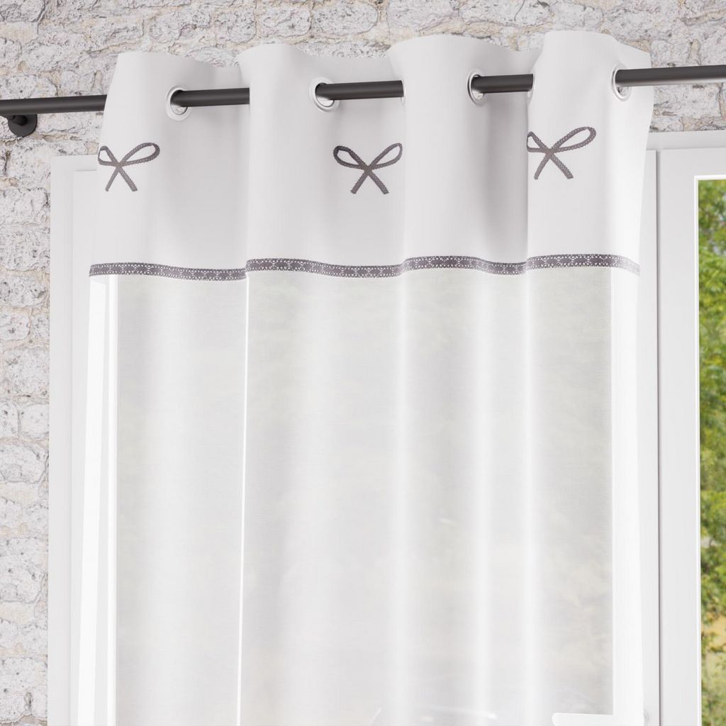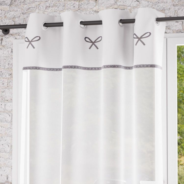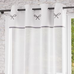Cette collection EMILIE à l'esprit romantique apportera un peu de douceur à votre intérieur. Finition: 8 oeilles métal inoxydables. Noeuds brodés. Composition: 100% coton brodé. Dimensions : 135 x 250 cm. Entretien: Lavage en machine à froid.