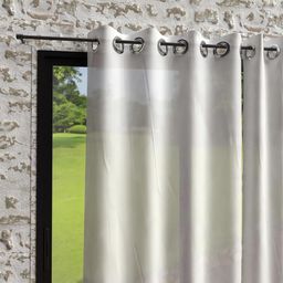 Voilage à oeillets uni très tendance à l'aspect froissé. Finition: 8 oeillets en métal inox (anti-rouilles). Prêt a poser. Composition: 100% polyester microfibre lavée. Dimensions: 135x250 cm Entretien: - Entretien facile. Lavable en machine à 30 degrés. - Repassage superflu.