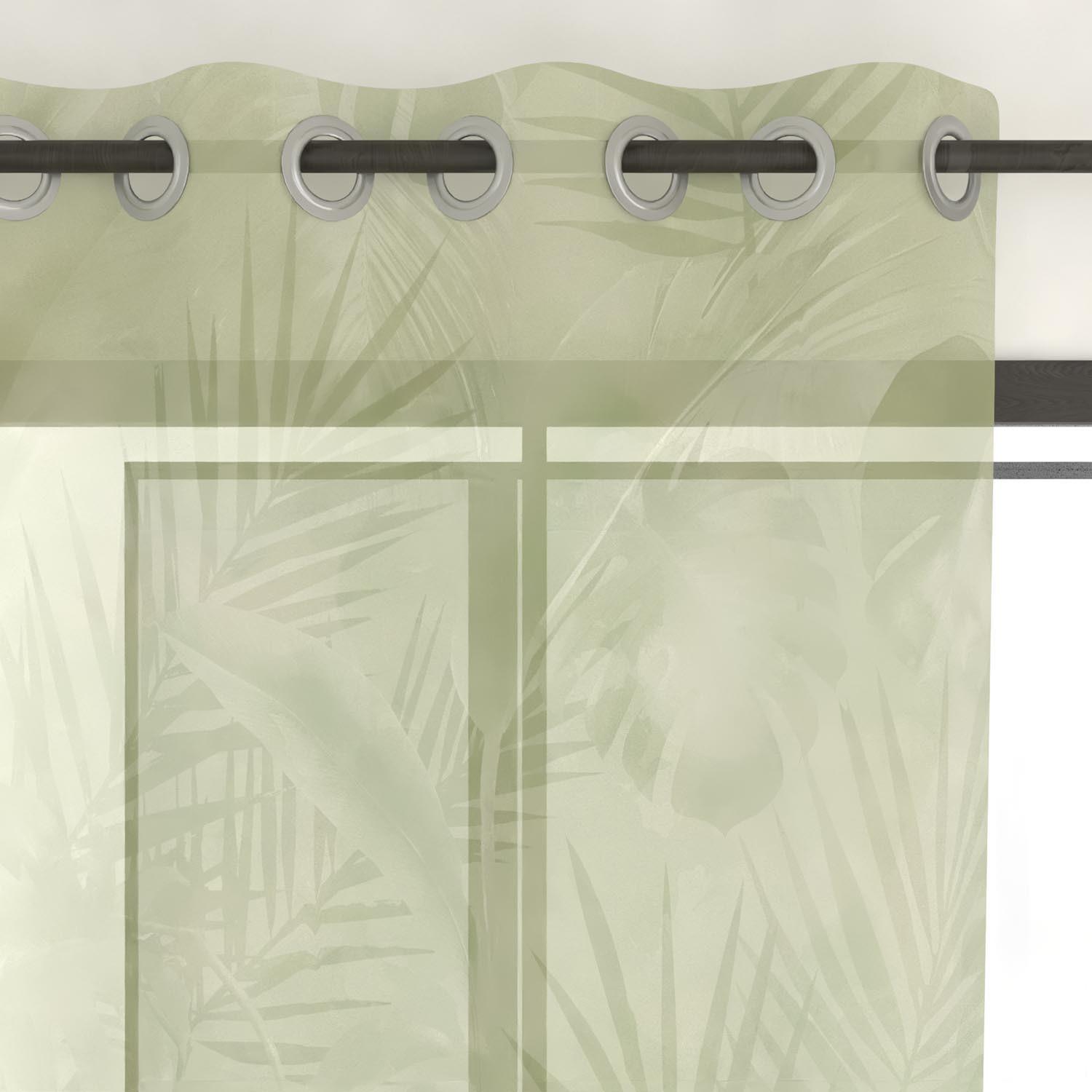Une douce touche d'exotisme avec cet imprimé aquarellé Goya au dégradé de verts. Finition: 8 oeillets en métal inox (anti-rouilles). Prêt a poser. Couleur: Vert. Composition: 100% polyester. Dimensions: 135x250 cm. Entretien: - entretien facile, repassage inutile. - lavable en machine 30°c.