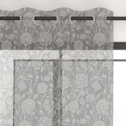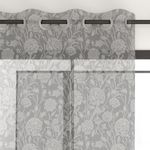 Cet imprimé fleural Dahlia en polycoton offrira élégance et sobriété à votre intérieur. Finition: 8 oeillets en métal inox (anti-rouilles). Prêt a poser. Couleur: Gris. Composition: 80% coton recyclé, 20% polyester Dimensions: 135x250 cm. Entretien: - entretien facile, repassage inutile. - lavable en machine 30°c.