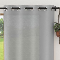 Voile à oeillets en lin, idéal pour apporter à votre intérieur douceur et naturel. Dimension: 280x250 cm Taille spéciale grande baie vitrée. Composition: 10% lin, 90% polyester 8 oeillets métal,voile prêt a poser.